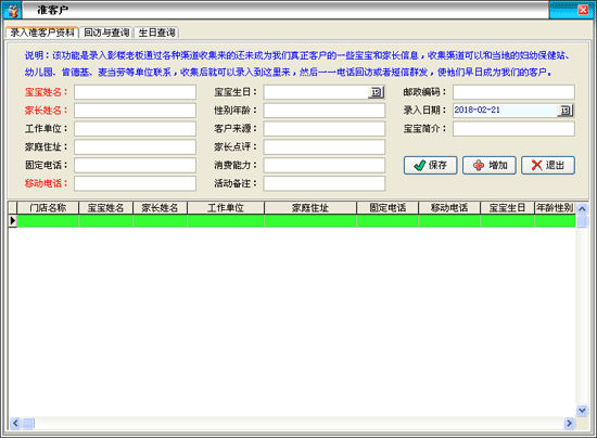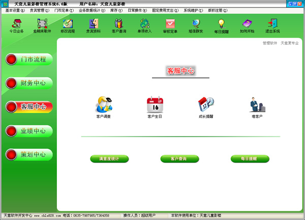 | 4、統(tǒng)計(jì)查詢:主要包括財(cái)務(wù)報(bào)表、客戶查詢、客戶狀態(tài)、服務(wù)業(yè)績(jī)、員工業(yè)績(jī)、滿意度統(tǒng)計(jì)、成長(zhǎng)提醒等內(nèi)容。 | |||