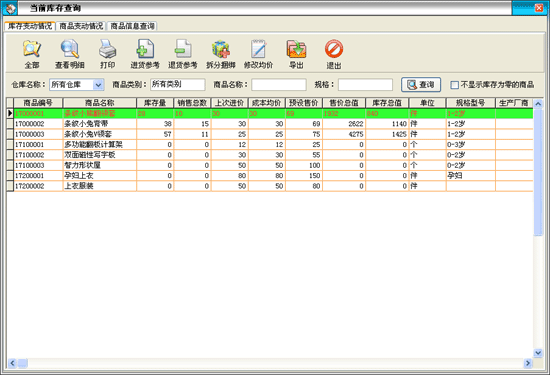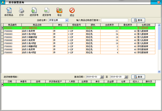 | 庫存管理:包括庫存之間商品調(diào)拔,商品的報損溢,強(qiáng)大的庫存盤點功能,庫存商品報警查詢。 | |||