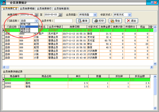 消費開單:對會員消費情況進行錄入,自動完成累計積分,消費打折。也可以增加會員消費商品的詳細信息。