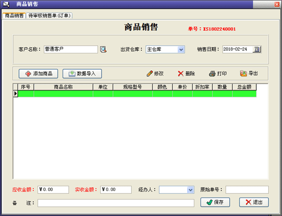 | 銷(xiāo)售管理:進(jìn)行商品銷(xiāo)售,顧客退貨,銷(xiāo)/退單據(jù)和當(dāng)前庫(kù)存查詢(xún),與客戶的往來(lái)帳務(wù)。 | |||