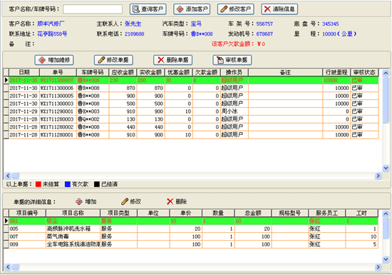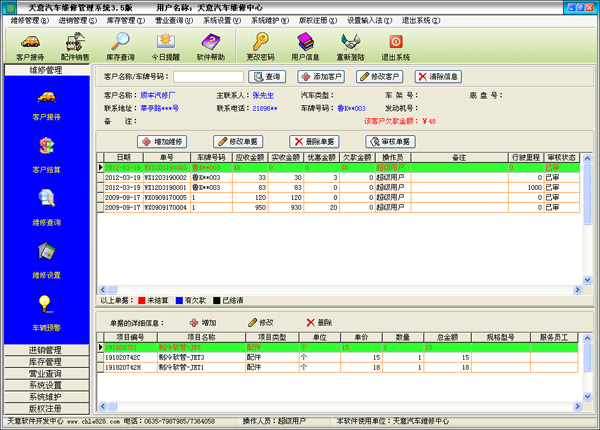 | 客戶接待:包括添加維修、添加客戶。完成客戶下單,調(diào)整維修單據(jù)配件服務(wù)項(xiàng)目。 | |||