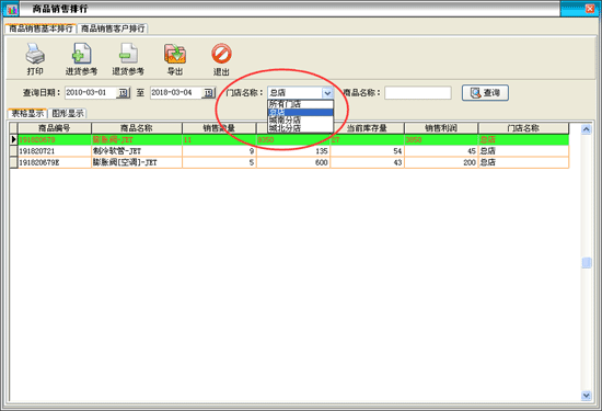 | 營業(yè)查詢:包括采購單據(jù)查詢、銷售單據(jù)查詢、當(dāng)前庫存查詢、供貨商供貨統(tǒng)計(jì)、客戶銷售統(tǒng)計(jì)、銷售商品排行等。 | |||