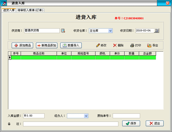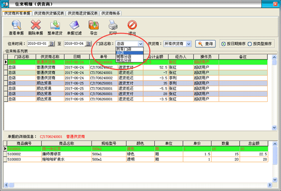 | 進(jìn)貨管理:進(jìn)行進(jìn)貨入庫(kù),退貨出庫(kù),進(jìn)/退單據(jù)和當(dāng)前庫(kù)存查詢,與供貨商的往來(lái)明細(xì)。 | |||