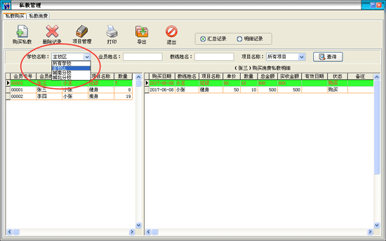 | 主要是對會員的基本信息、充值情況、事件提醒、會員請假、私教管理。 | |||