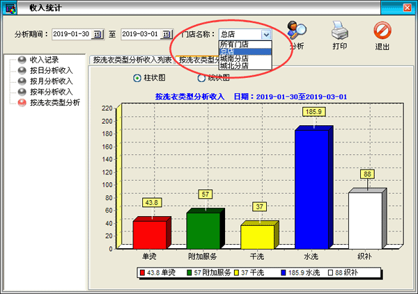 | 統(tǒng)計(jì)管理:包括會(huì)員消費(fèi)統(tǒng)計(jì)、收入統(tǒng)計(jì)、收衣取衣統(tǒng)計(jì)、洗衣單統(tǒng)計(jì)等。該模塊可以幫助您分析您在某一段時(shí)間的經(jīng)營(yíng)狀況,幫您掌握客戶的消費(fèi)動(dòng)態(tài)。收入統(tǒng)計(jì)可以按月或按年統(tǒng)計(jì),可以給您提供詳細(xì)的消費(fèi)信息。給您在將來(lái)的經(jīng)營(yíng)決策提供相關(guān)信息。會(huì)員消費(fèi),可以統(tǒng)計(jì)出某個(gè)會(huì)員在某一段時(shí)期內(nèi)的消費(fèi)情況(會(huì)員卡充值,會(huì)員洗衣等)。并能統(tǒng)計(jì)出衣物的干洗趨勢(shì)(即客戶一般洗衣類型,方式等)。 | |||