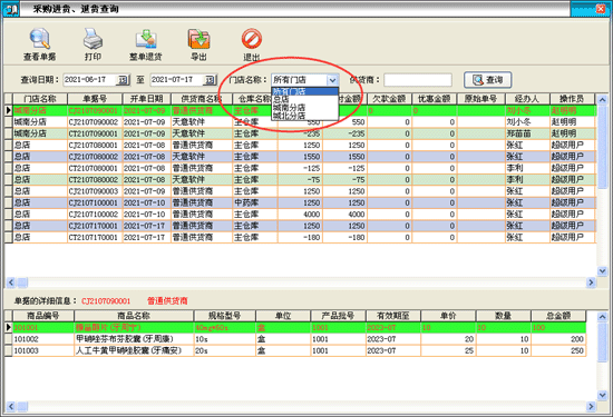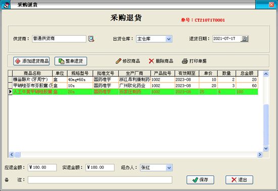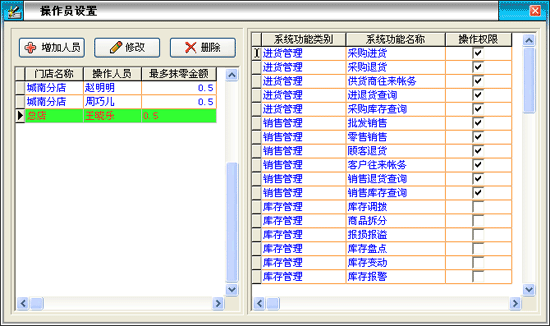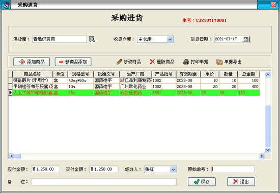 | 進(jìn)貨管理:進(jìn)行商品采購入庫,采購?fù)素?進(jìn)/退單據(jù)和當(dāng)前庫存查詢,與供貨商的往來帳務(wù)。 | |||