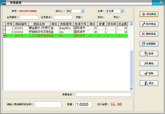 | 銷售管理:進(jìn)行商品銷售,顧客退貨,銷/退單據(jù)和當(dāng)前庫存查詢,與客戶的往來帳務(wù)。 | |||